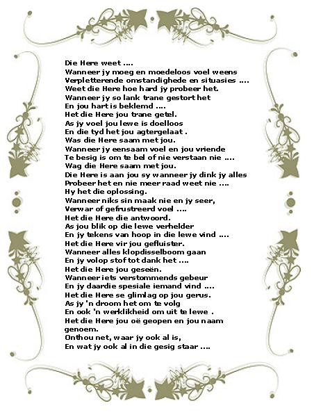 Sê hierdie versie miskien wat God se Wil vir ons lewens is?