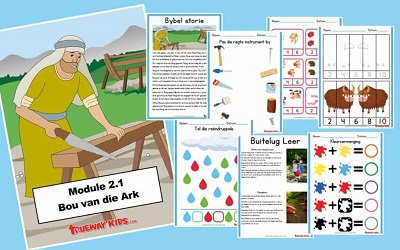 Elke les sluit die volgende in: les uiteensetting, Bybel storie, speletjies, aktiwiteite, werkkaarte, inkleur bladsye, kunswerk en nog meer.